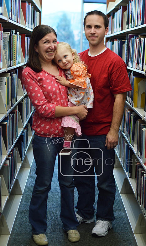 2. Take it inside. This is what I opted to do for this particular shoot. With wet ground and freezing temperatures I did not want this adorable little wee one to have to put up with the cold. When taking pictures inside venue needs to be considered. To get true lifestyle portraits you can either use a studio with custom props or find the right location for your clients (like a library for my bookworm friend and her family). LIGHTING, LIGHTING, LIGHTING. Find big windows, skylights, or other sources of natural light or bring lighting equipment. Bad weather days mean lighting is going to be at a prime indoors.